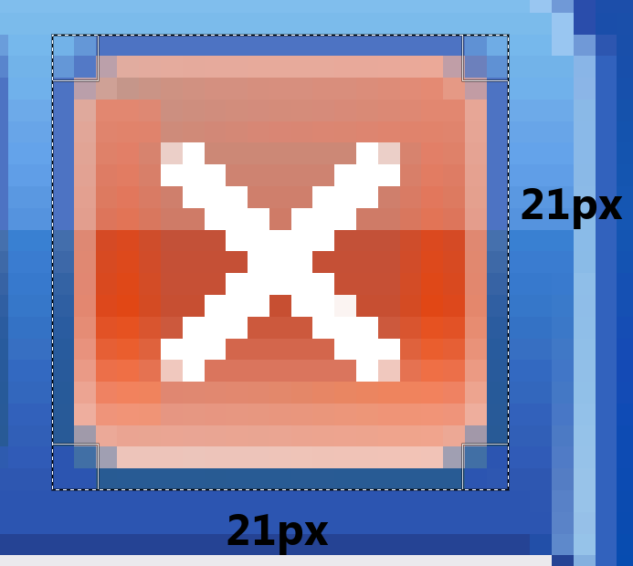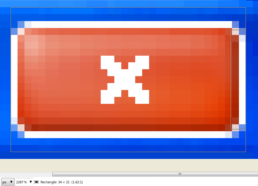 Well, that's weird. At least we could've safely assumed that the end result would be square, given that the button texture itself is square. Repeating this for a couple of other values, we'll see that the result is always off by 4 pixels. In fact, repeating this for other themes as well, we can see that there's a 4 pixel discrepancy in the rendered button height, in the form of some kind of top and bottom margins: