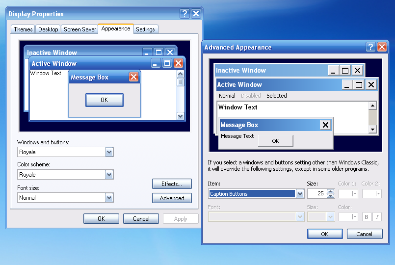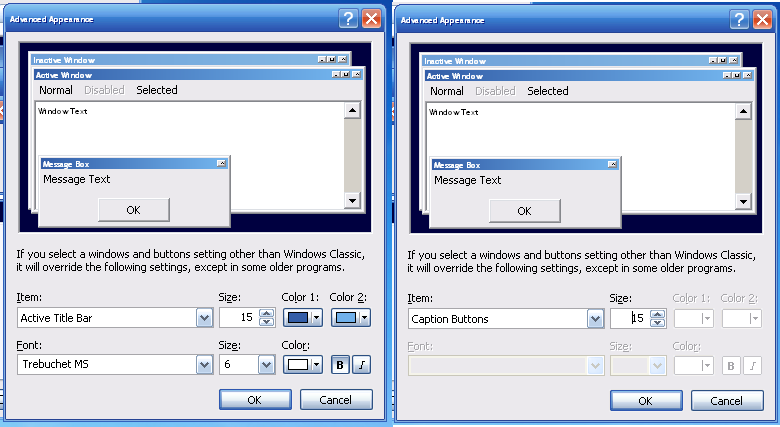 In trying to understand how Windows XP theming system works, we ended up discovering that the devil is in the details. Windows XP allows the user to tweak the UI in many ways, one being the ability to change the size of the window caption buttons.